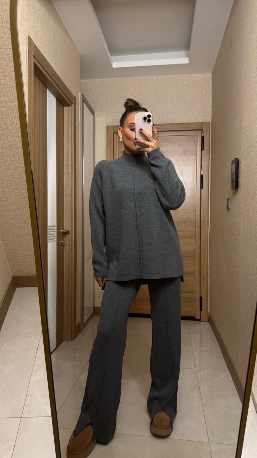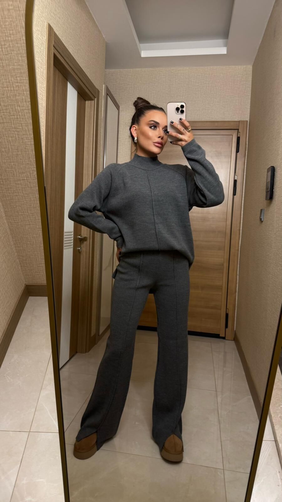 Şık ve rahat gri triko takım, soğuk günlerde stilinizi tamamlamak için ideal. Yumuşak dokusu ve modern kesimiyle hem evde hem de dışarıda konfor sunar. Farklı kombinlerle kolayca uyum sağlar, gardırobunuzun vazgeçilmezi olmaya hazır.Beden Standarttır.